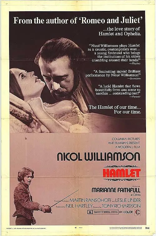丹麦王子哈姆雷特(尼科尔•威廉森 Nicol Williamson 饰)在接到了父亲的死讯之后匆匆赶回国内,让哈姆雷特没有想到的是,继承王位的是他的叔叔克劳狄斯(安东尼•霍普金斯 Anthony Hopkins 饰),在不久之后,克劳狄斯迎娶了哈姆雷特的母亲,就这样,昔日的叔叔,如今成为了哈姆雷特的继父。一天,哈姆雷特的面前出现了父亲的鬼魂,父亲告诉他,自己是被克劳狄斯下药毒死的,他希望儿子能够为自己复仇。回国后的哈姆雷特邂逅了纯洁美丽的女孩奥菲利亚(玛丽安娜•菲斯福尔 Marianne Faithfull 饰),谁知,他却错手下毒害死了奥菲利亚的父亲,导致奥菲利亚自杀。